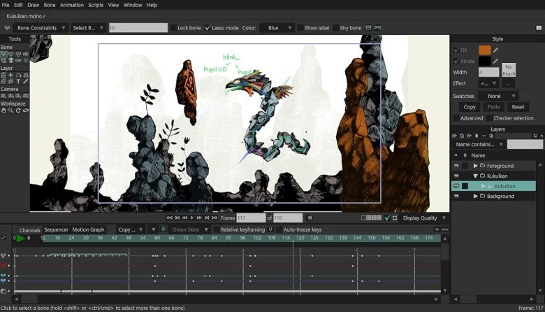 - ابزارهای طراحی پیشرفته: با ابزارهای قدرتمند Bézier و ابزارهای پرکردن رنگ، طراحی کاراکترهای برداری در موهو سریع و باکیفیت است.